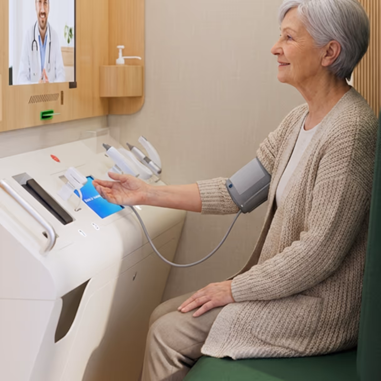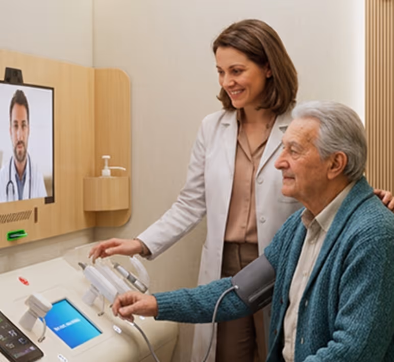 En pharmacie, consultez avec des dispositifs médicaux connectés : stéthoscope, thermomètre, tensiomètre, oxymètre, dermatoscope, otoscope.